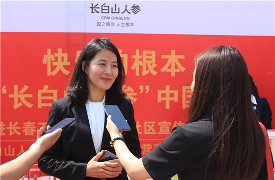 吉林省长白山人参有限公司董事长王淑范接受媒体采访。